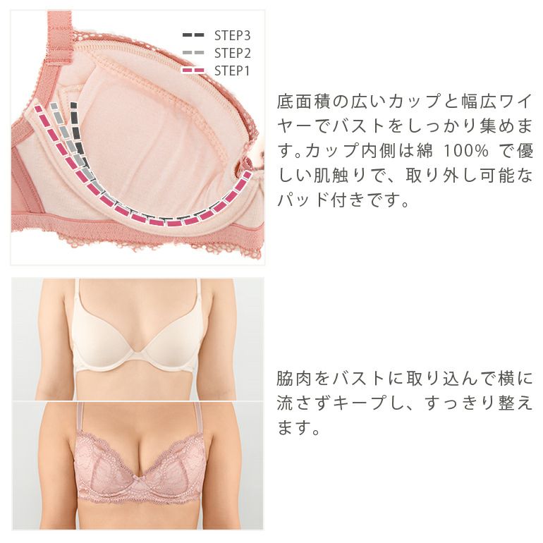 他の画像を見る ブラデリス ローズステップ2ブラ24S1 ¥ 13,200 ¥ 9,240 税込 メディア掲載 SALE ステップ補整ステップ2 集める ローズタイプ 3個どめホック カートに入れる お気に入りに登録する