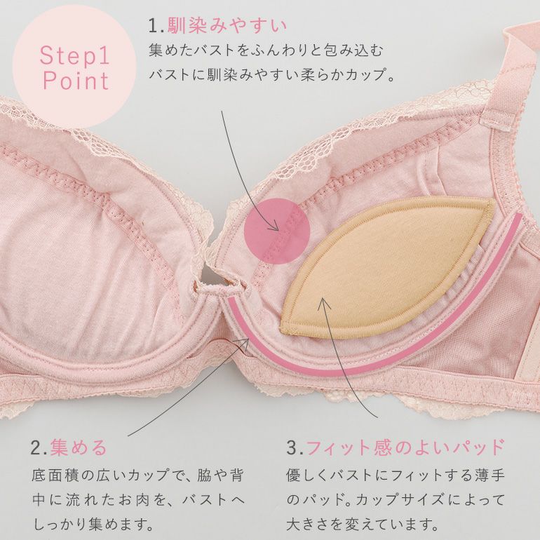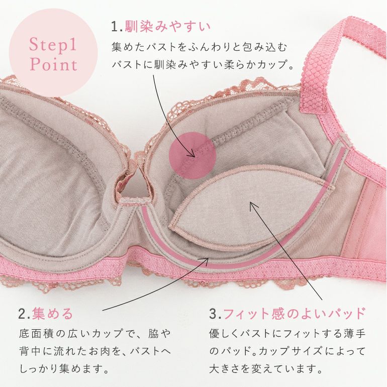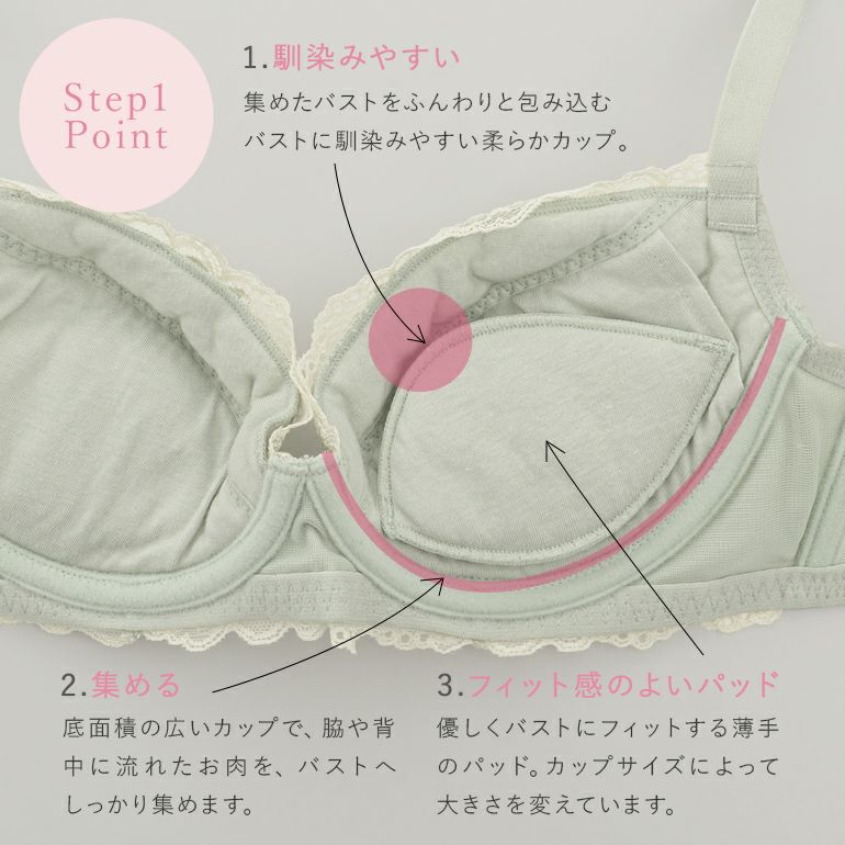 他の画像を見る ブラデリス ジャスミンステップ1ブラ24S1 ¥ 9,900 ¥ 6,930 税込 SALE ステップ補整 ステップ1 集める ジャスミンタイプ 3個どめホック カートに入れる お気に入りに登録する