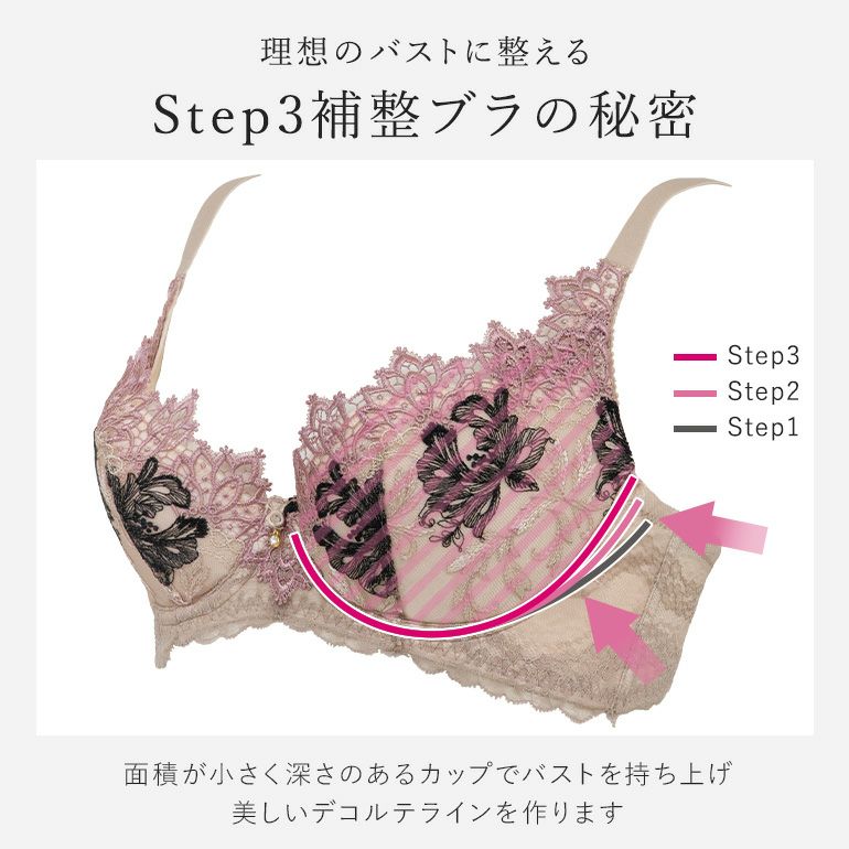 他の画像を見る ブラデリス ローズステップ2ブラ25A1 ¥ 13,200 税込 送料無料 2025AW ステップ補整 ステップ2 寄せる ローズタイプ 3個どめホック カートに入れる お気に入りに登録する