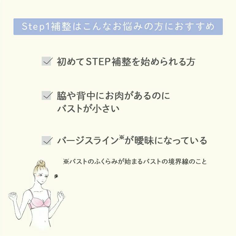 他の画像を見る ブラデリス ジャスミンステップ1ブラ23A1 ¥ 11,000 ¥ 6,600 税込 SALE ステップ補整ステップ1 集めるジャスミンタイプ3個どめホック カートに入れる お気に入りに登録する