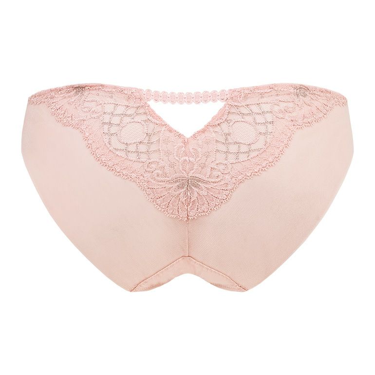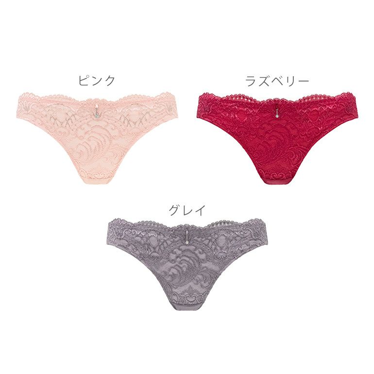 緻密なシルバーラメが美しいリバーレース*を使用し、古典的ながらも新しさを感じさせるデザインのパンティです。フロント全面にあしらったレースと揺れるモチーフで、ラグジュアリーな仕上がりに。