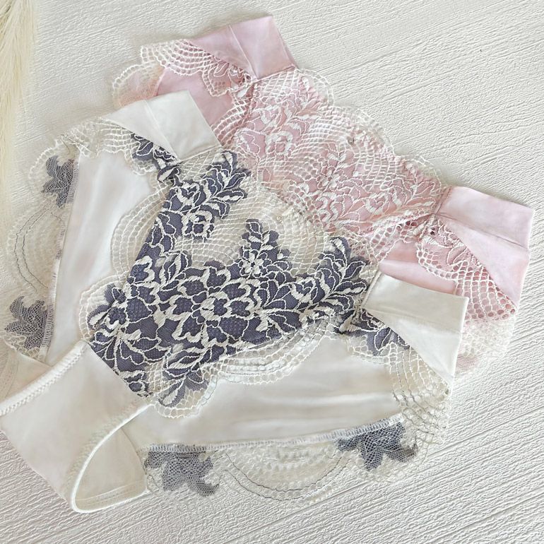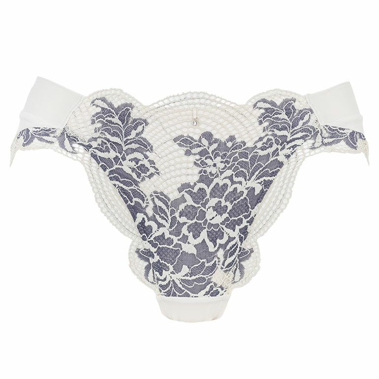 エレガントでありながら個性的なストレッチラッセルレース*を使用した、パンティです。重なり合う配色と模様が立体感を生み出し、どの角度から見ても美しい表情を楽しめます。