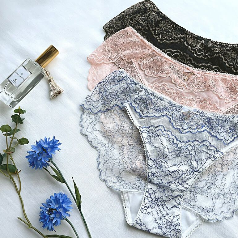 - ヒップを美しく見せ、アウターに響きにくい総レース仕様です。