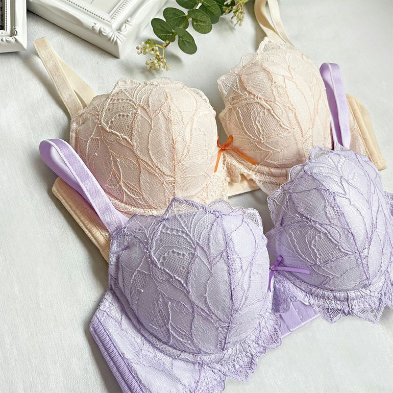 葉脈のような大きなリーフ柄のストレッチラッセルレース*を使用したステップ2の補整ブラジャーです。繊細ながら奥行きと躍動感のあるレースとエアリーな透け感が素肌を美しく見せます。
