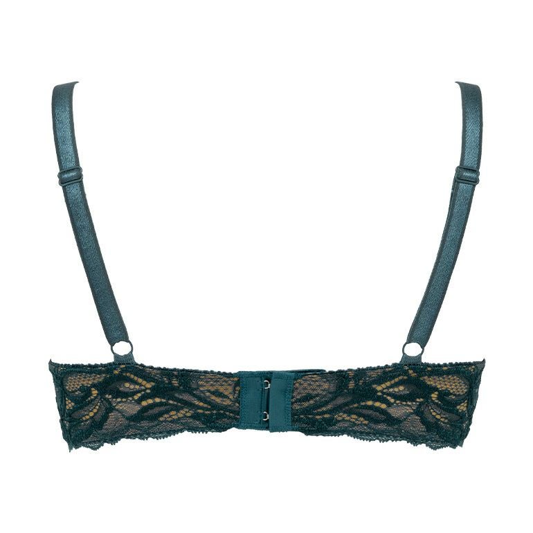 前浅ワイヤーが脇をすっきり整えて丸みのある女性らしいバストを作り、バストトップを高い位置にキープします。乳間が狭くプッシュアップ機能が高いので、しっかりとバストを集めて中心に寄せ上げ、綺麗な谷間を作ります。