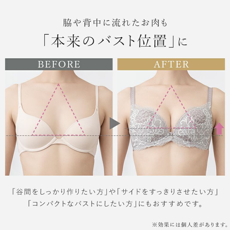 谷間をしっかり作りたい方、サイドをすっきりさせてコンパクトに見せたい方にもおすすめです。