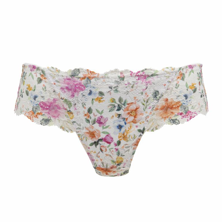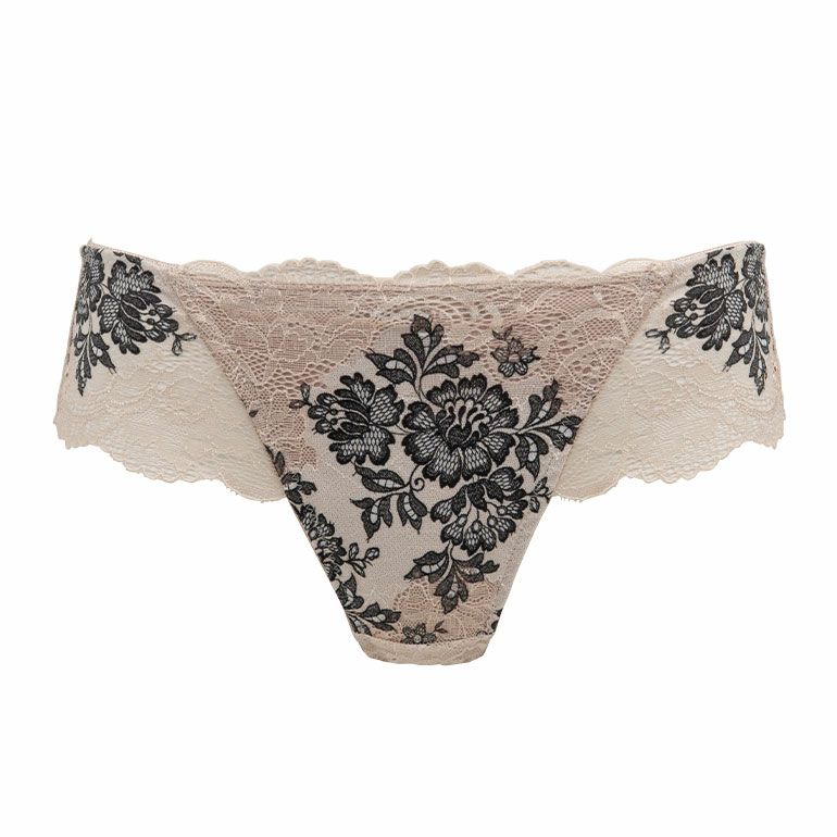 ストレッチラッセルレース*に繊細かつ立体的なプリント加工を施した、総レース仕様のパンティです。