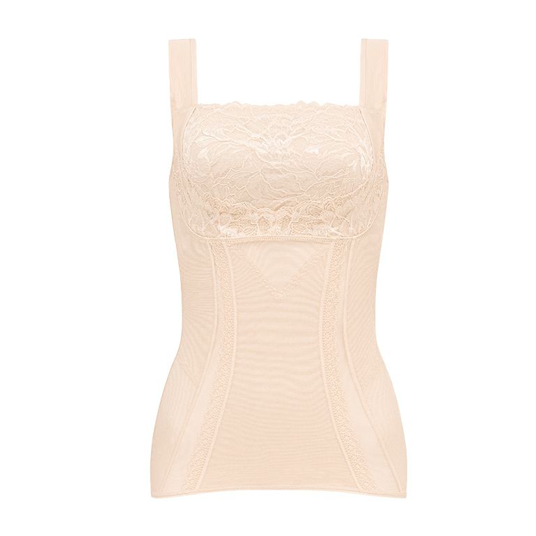 - 三枚接ぎの立体パターンで身体にフィット。上辺は、ソフトパワーネットを裏打ちした二重構造で安定感が良く、脇肉を押さえてバストの下流れを防ぎます。