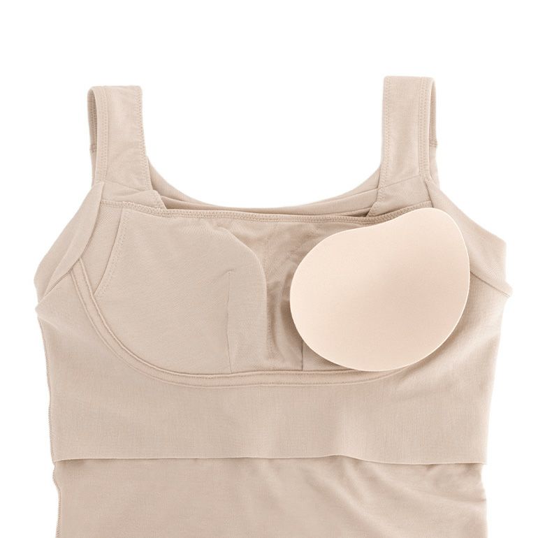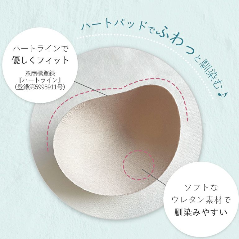 - 上辺をバストに沿いやすい波型カーブ(ハートライン)にすることで、より自然なバストメイクを実現する、取り外し可能なパッドを使用。