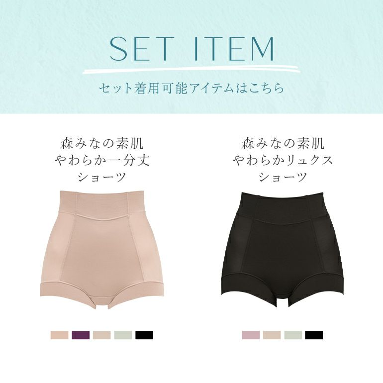 - 上部は身生地にパワーネットを挟んだ三重構造で押さえることで段差ができにくく、幅広のU字仕様のため安定感のある着心地です。
