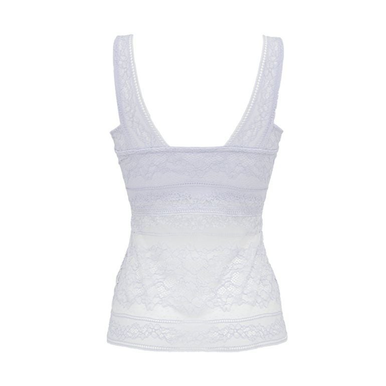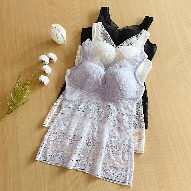直線状のスカラと花柄を組み合わせた、トレンド感のあるストレッチラッセルレース*を使用した、アウターライクなデザインの補整ノンワイヤーブラキャミです。