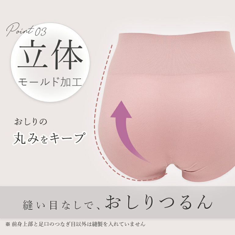 - 生地にモールド加工を施しているので、縫い目が無く、お尻の丸みを潰すことなくきれいなヒップラインを作ります。