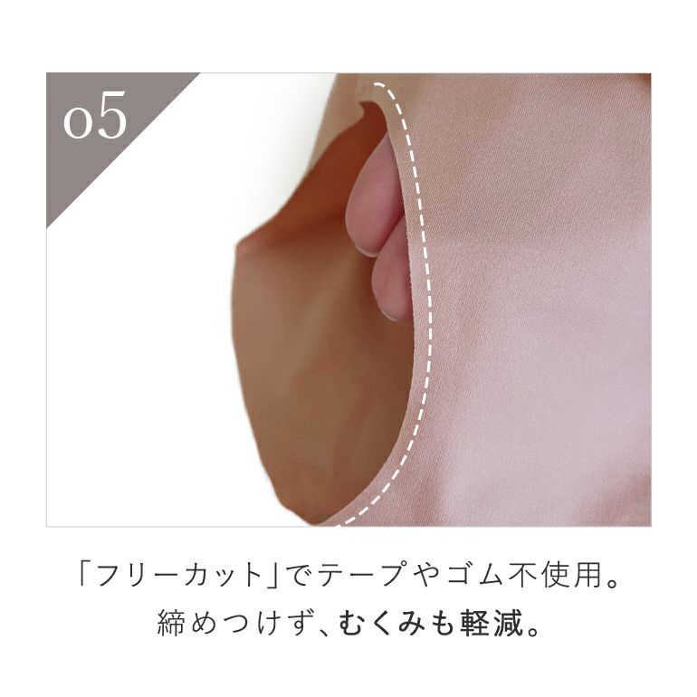 タテ・ヨコどちらの方向にも良く伸びるフリーカット素材で、段差を解消しアウターに響きにくく、日常使いはもちろん、ラインの出やすいアウターを着用した際や、スポーツ・就寝時にもぴったりです。