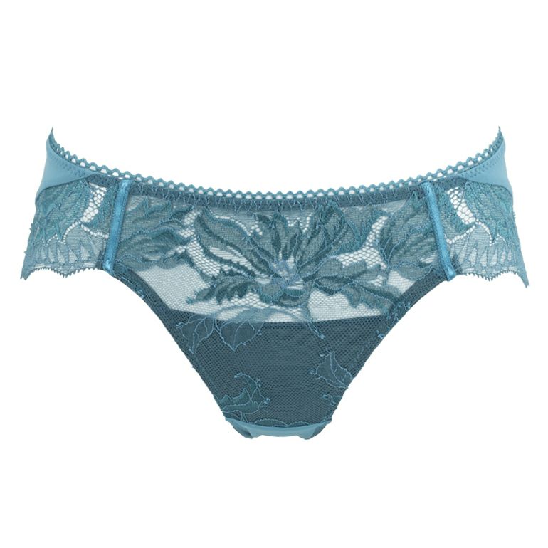 クレマチスの花柄とアールデコ調のドット柄スカラを組み合わせ、二浴染め*ストレッチリバーレース*を使用したパンティです。光沢テープやデザイン性のあるピコテープがアクセントになっています。