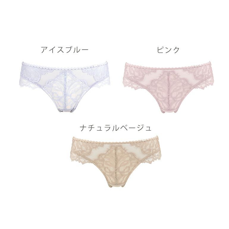 華やかな2種類のリバーレース*を使用したパンティです。シルバープレートのモチーフが輝く上質な雰囲気のデザインです。