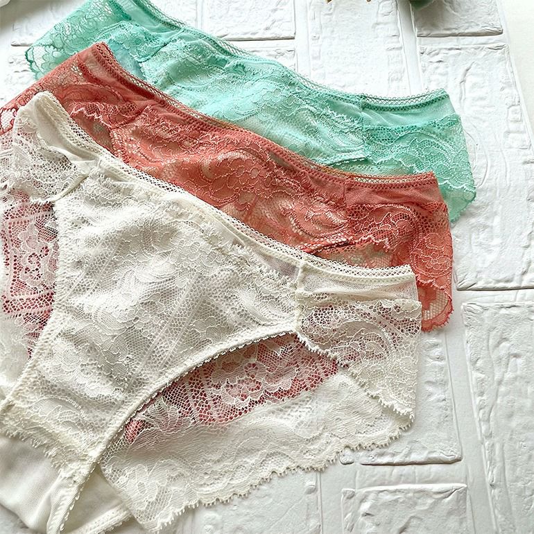 - 幅広くレースを使用。ヒップを美しく見せ、食い込みにくくアウターにも響きにくいです。