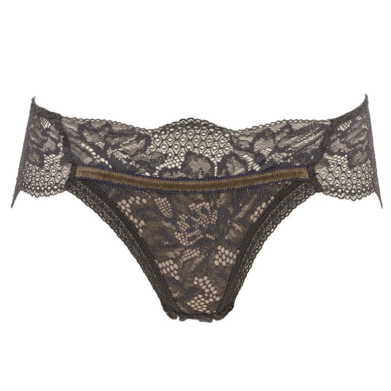 巧みなコード糸使いと、上品な光沢のある糸によって表現された繊細な柄のストレッチラッセルレース*を使用したパンティです。レースをふんだんに使用し、細幅レース切替とフロントにベルベットテープをあしらった美しいデザインです。
