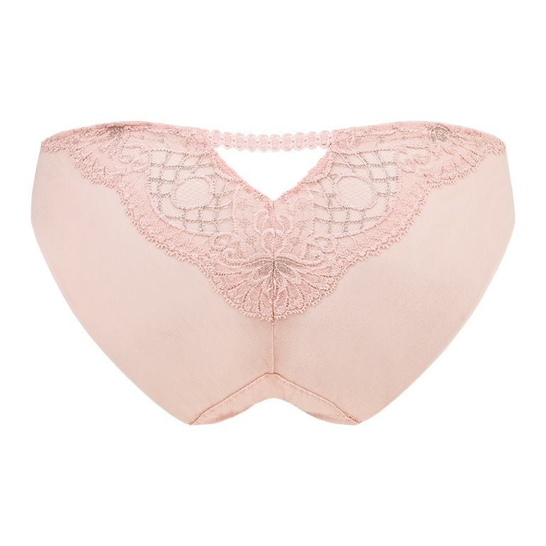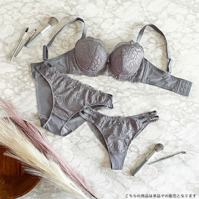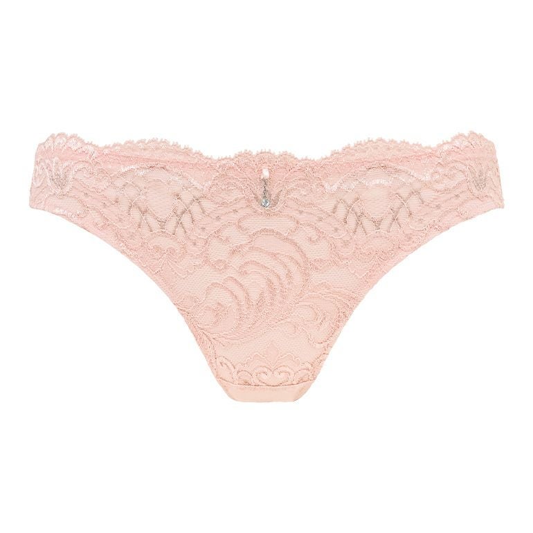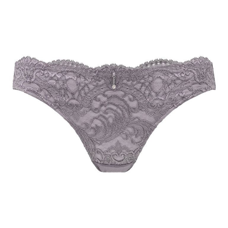 緻密なシルバーラメが美しいリバーレース*を使用し、古典的ながらも新しさを感じさせるデザインのパンティです。フロント全面にあしらったレースと揺れるモチーフで、ラグジュアリーな仕上がりに。