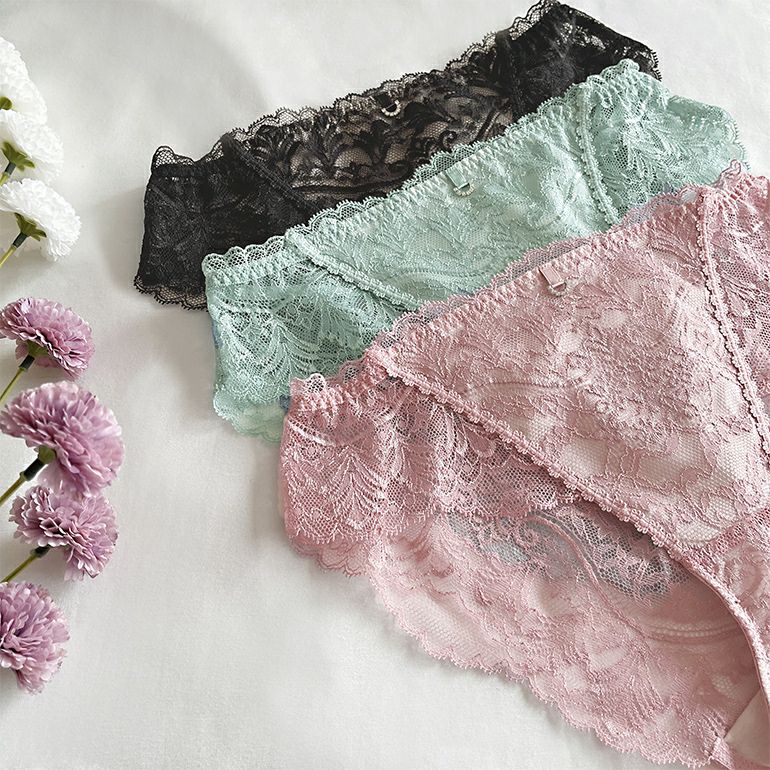 高級感のあるストレッチリバーレース*をふんだんに使用した、総レースの華やかなデザインのパンティです。
