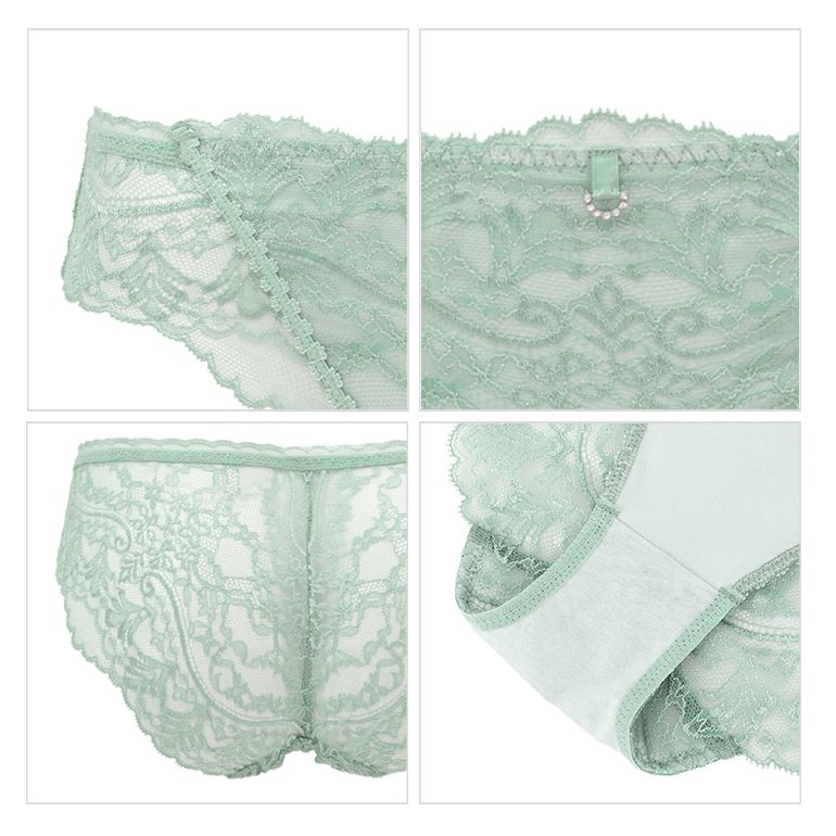 - 裏打ちは、ブラと同色のストレッチサテンを使用。華やかな光沢感があり、優しい肌触りです。