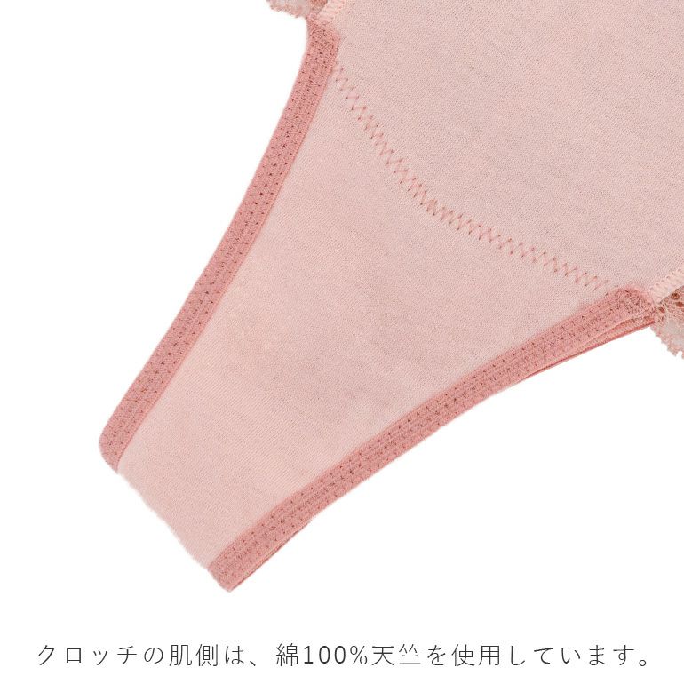 フロントの裏打ちはブラと同色の綿100%天竺*を使用しています。肌触りが良く、はき心地の良い着用感です。
