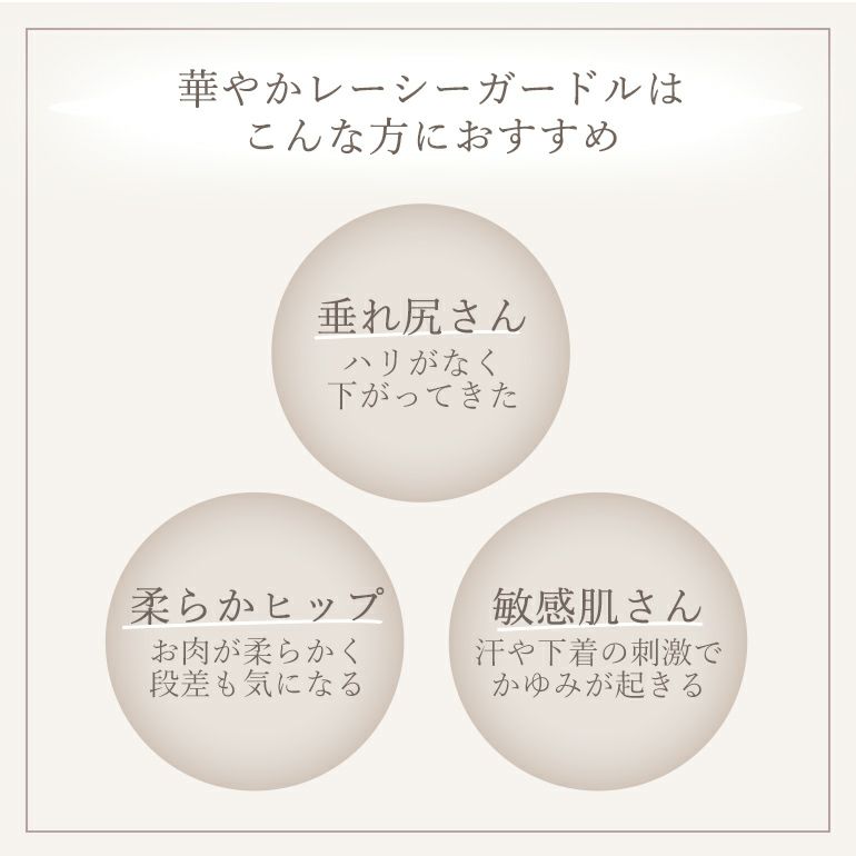 西洋柊がモチーフのグレースフルリーフ柄ストレッチレースを使用した、補整ガードルです。お腹から太ももまで心地よくサポートし、綺麗な丸みのあるヒップラインを実現します。