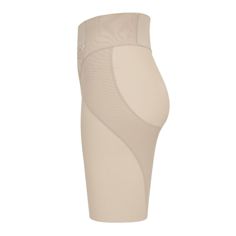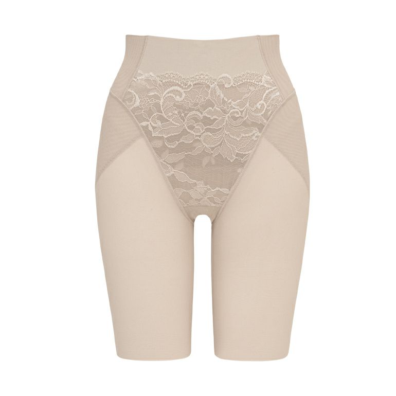 - ナイロン綿ベア天竺*・レース・パワーネットの3重構造。ウエスト上辺までサポートし、お腹をすっきりシェイプします。
