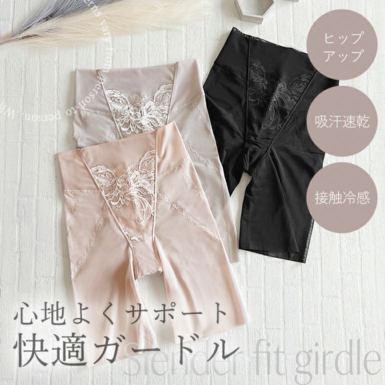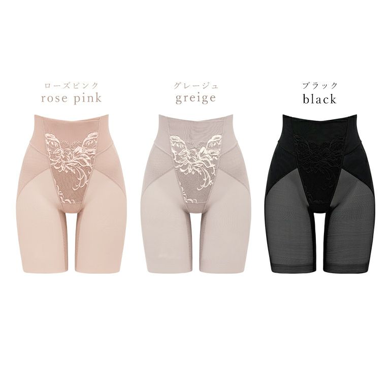 美しい光沢感と二浴染め*の落下板が華やかなボタニカルリーフ柄のストレッチレースを使用した補整ガードルです。お腹から太ももまで心地よくサポートし、綺麗な丸みのあるヒップラインを実現します。