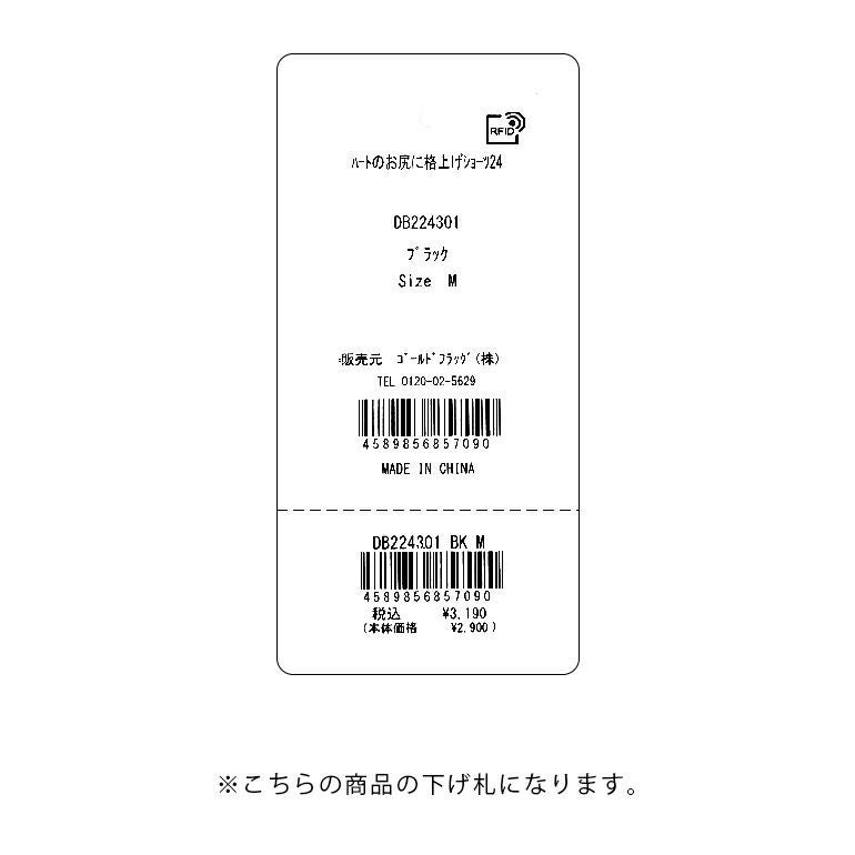 ヒップ中心に施したテープとギャザーがヒップを引き上げ丸みのあるラインを作ります。さらにバックは、ヒップ下からサイド、ウエストに向かって一体型になって引き上げる「ハート尻パネル」と、身生地と下垂防止パネルの三重構造で、流れたお尻のお肉を集めて上向きの美尻を作ります。