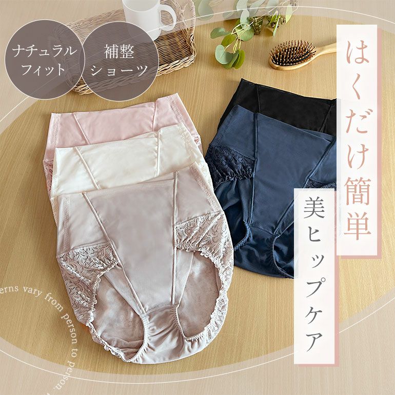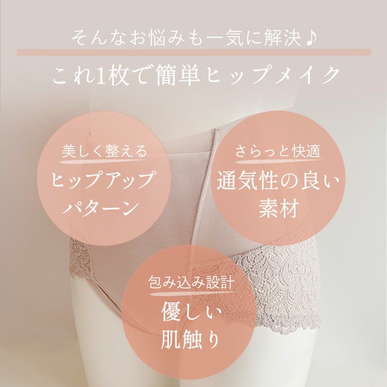 オリジナル開発の新柄クロシェレースを使用した、ハイウエスト補整ショーツです。オリジナル開発の高伸度ストレッチレースがヒップをすっぽりと包み込み、美しくヒップメイクします。