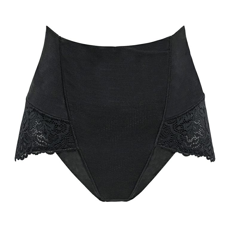 - パワーネット素材を折り返した二重のウエストパネルを設置。ハイウエスト設計で腰周りのお肉を包み込んですっぽりカバーします。
