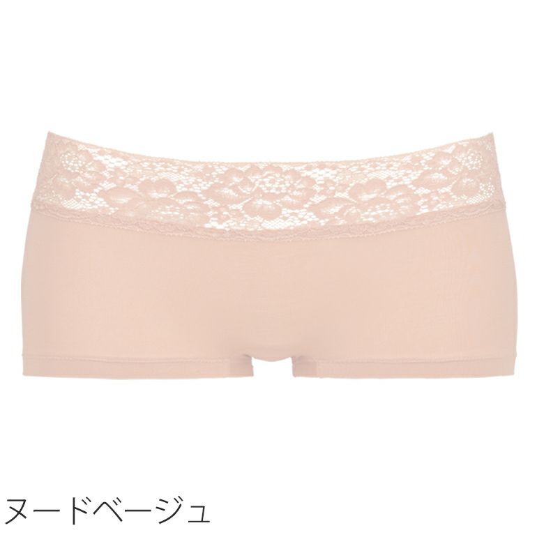 素肌に吸い付くようなフィット感が魅力の、肌に優しいナイロン綿ベア天竺を使用した、おしりが桃シリーズのボーイレッグショーツです。