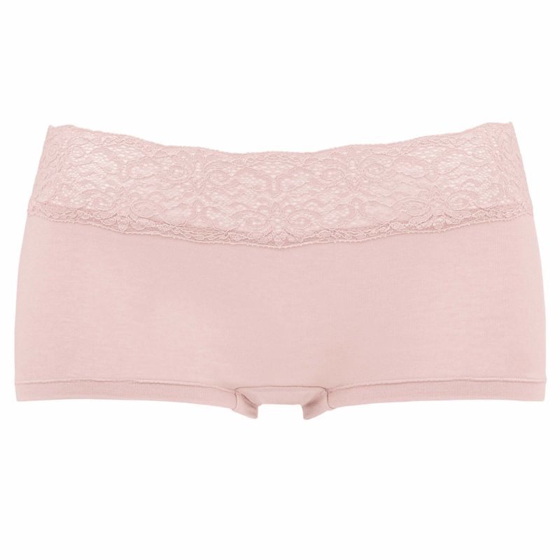 素肌に吸い付くようなフィット感が魅力の、肌に優しいナイロン綿ベア天竺を使用した、おしりが桃シリーズのボーイレッグショーツです。