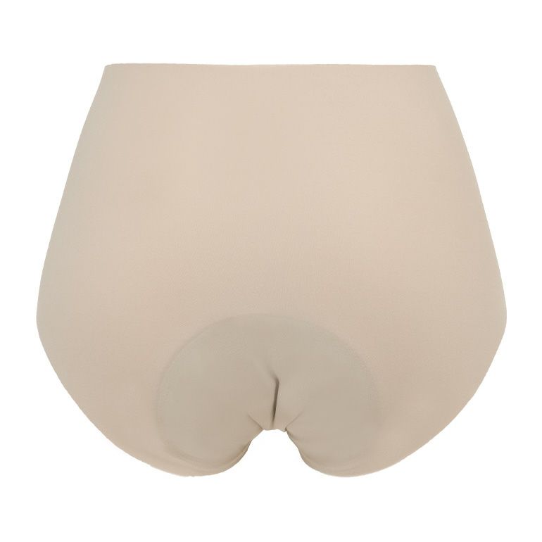 なめらかでとろりとした肌触りのストレッチナイロントリコット素材を使用した、シームレスタイプの吸水ショーツです。縫製・テープ不使用で肌触りが良く、ボトムスにも響きにくいのが特徴です。