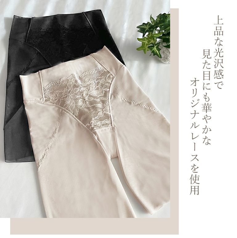 西洋柊がモチーフのグレースフルリーフ柄ストレッチレースを使用した、補整ガードルです。お腹から太ももまで心地よくサポートし、綺麗な丸みのあるヒップラインを実現します。