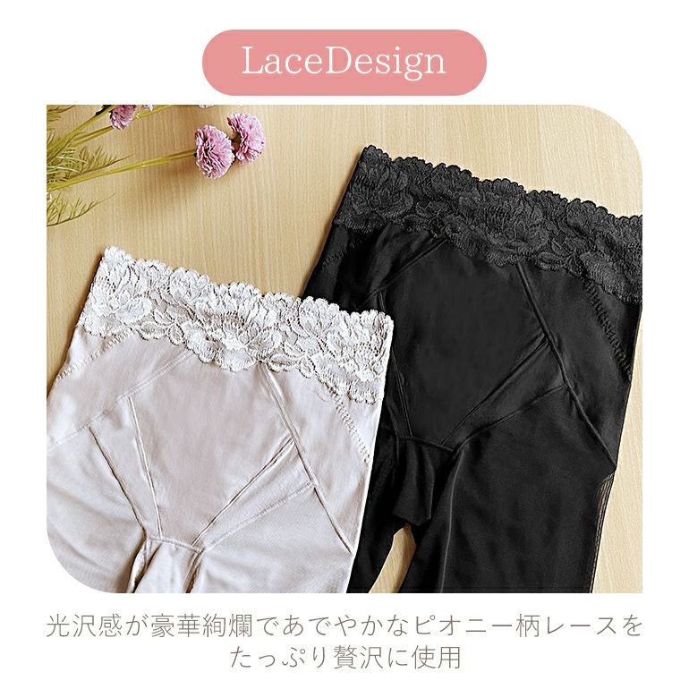 オリジナル細幅レースをウエスト一周使用し、締めつけ感や段差を和らげ楽な着心地です。