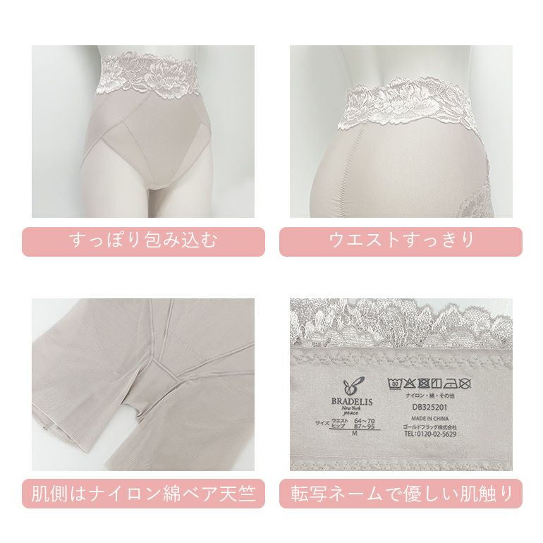 フロント部分は身生地とパワーネットの三重構造で、気になるお腹をすっきりと整えます。