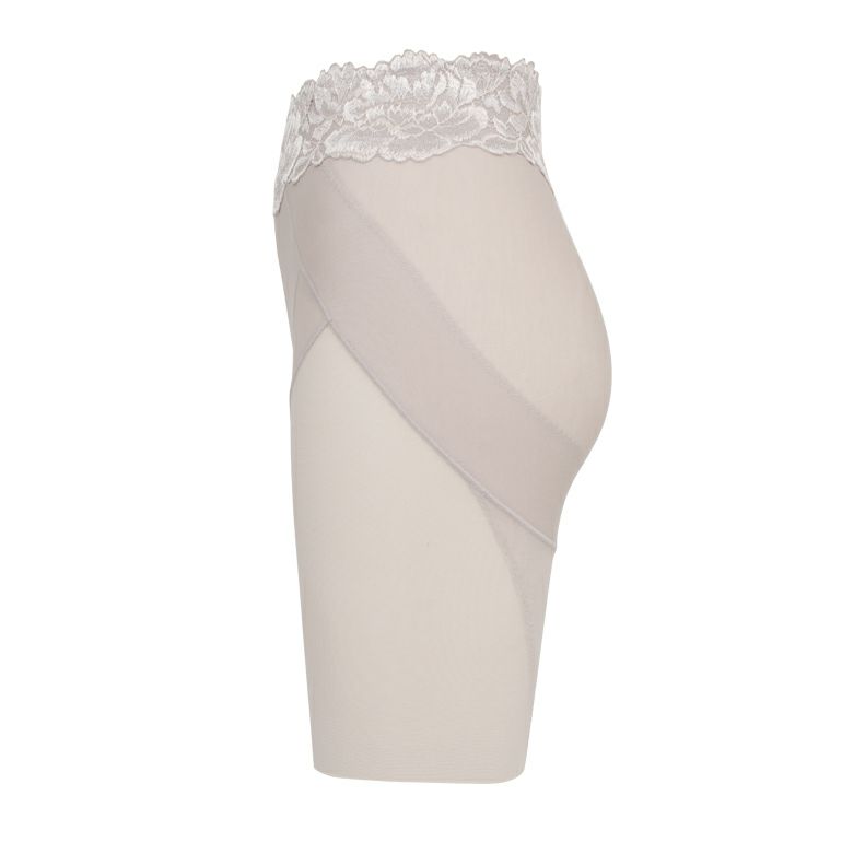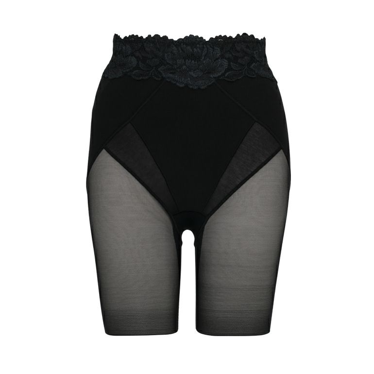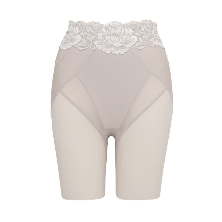 独自のヒップアップパターンでおしりが"P"の字に見えるような立体的なヒップラインをかなえる、ロング丈の補整ショーツです。