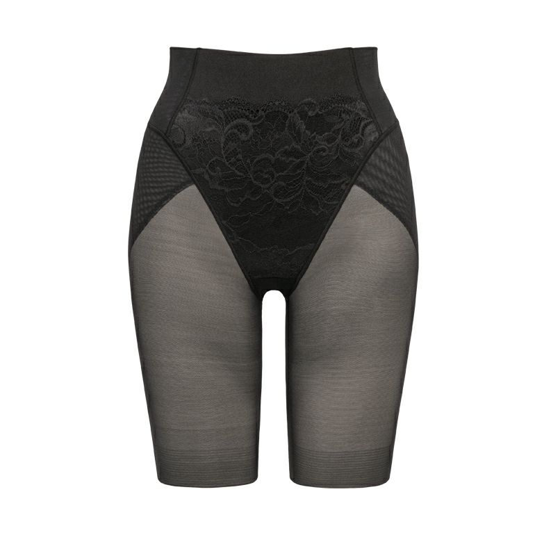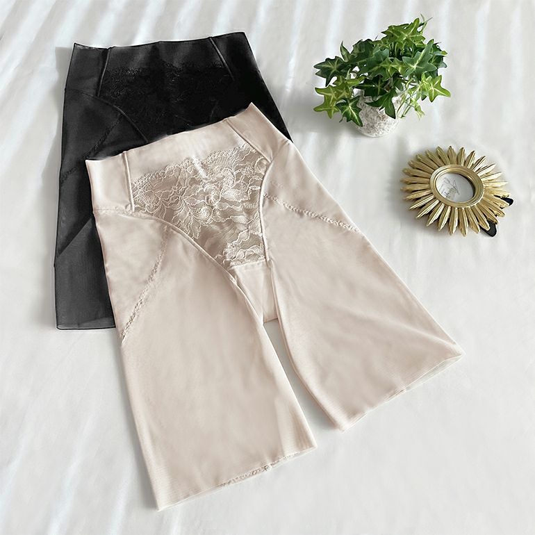 - ナイロン綿ベア天竺*・レース・パワーネットの3重構造。ウエスト上辺までサポートし、お腹をすっきりシェイプします。