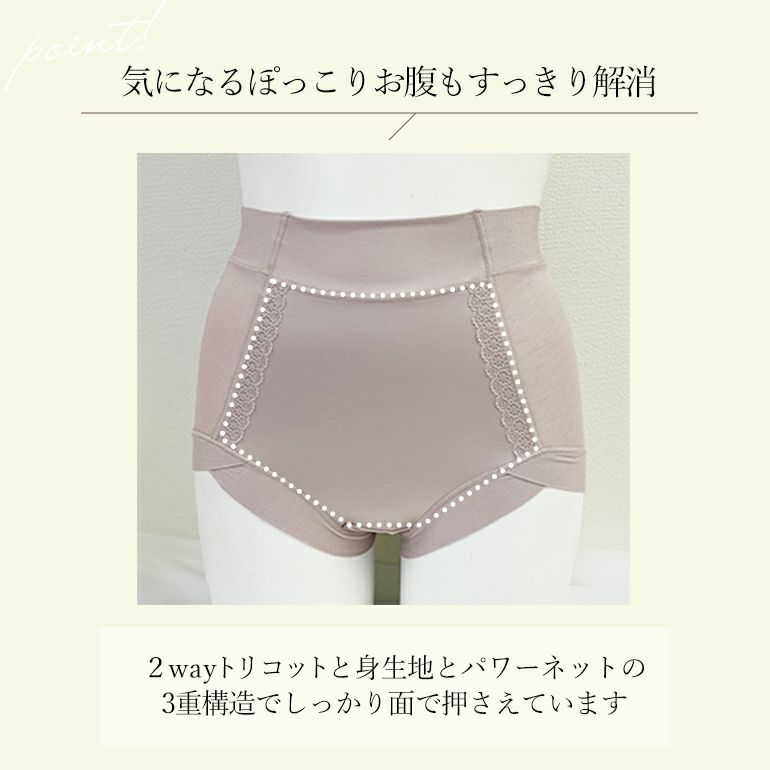 - 三重構造(表生地・パワーネット・綿ベア天竺*)で、気になるお腹をすっきりカバーします。