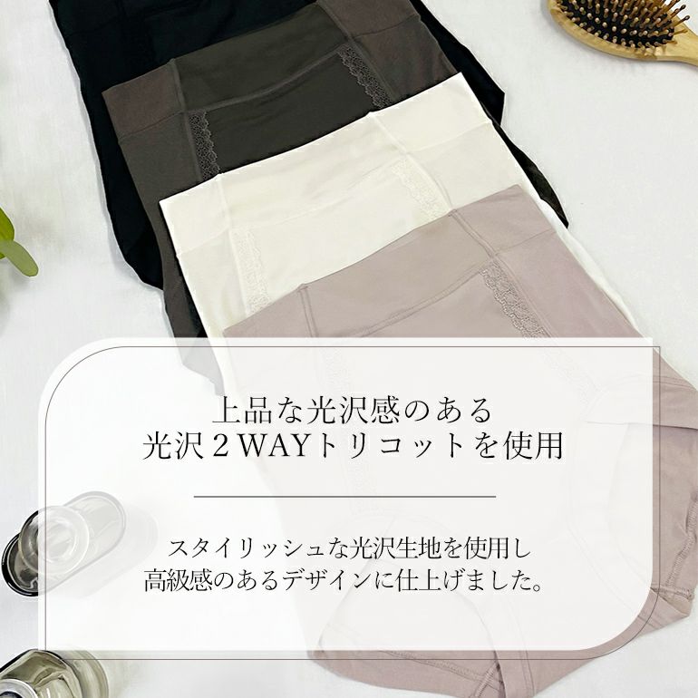 上品で高級感のあるハイゲージ光沢2WAYトリコット生地を使用した、オリジナルパターンの補整ショーツです。