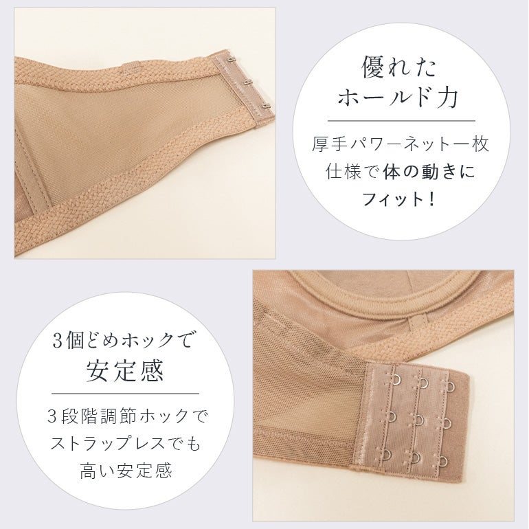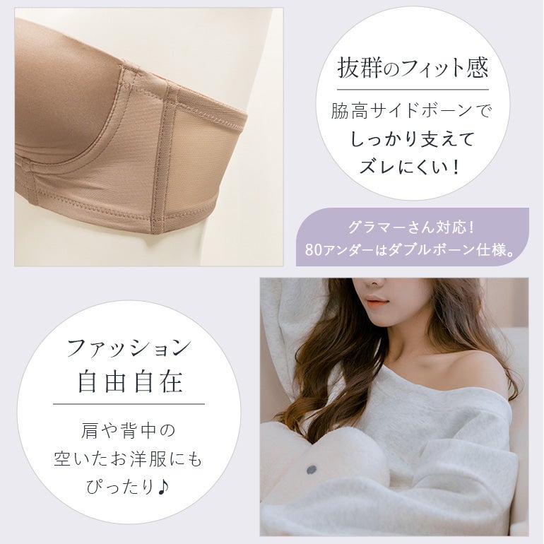 オフショルダーや背中の開いたお洋服に最適なモールドストラップレスブラ。