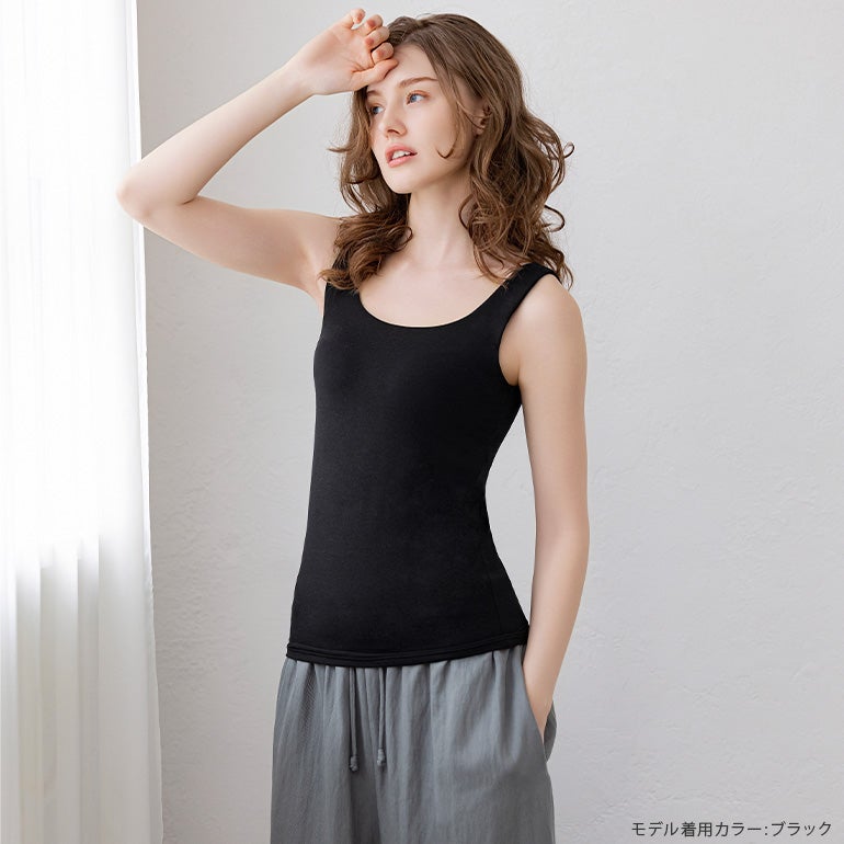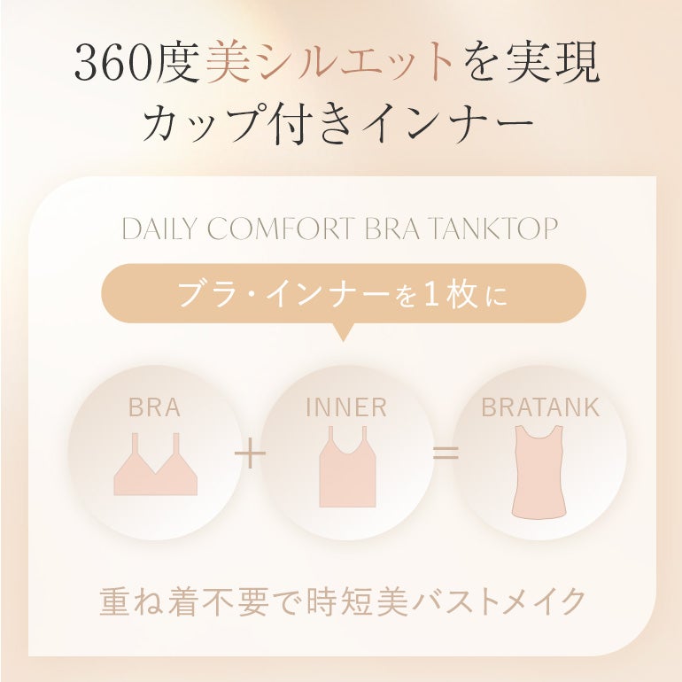 洋服を選ばないシンプルなデザインで、デイリー使いにぴったりな補整ノンワイヤーブラタンクトップ。