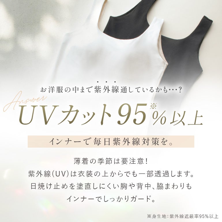 さらに紫外線遮蔽率95%以上のUVカット機能に加え、吸汗性・速乾性にも優れ、オールシーズン快適にご着用いただけます。