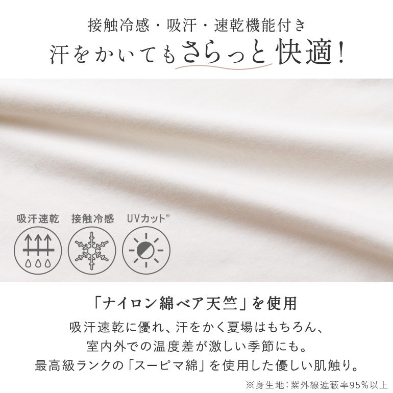 【UVカット・吸水速乾機能付きの、やさしい肌触り生地】