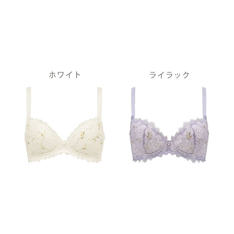 幅の狭いワイヤーで、カップに深みを持たせているため、バストの高さをつくります。さらに、乳間が狭く、集めたバストを中心に寄せる機能を持っています。
