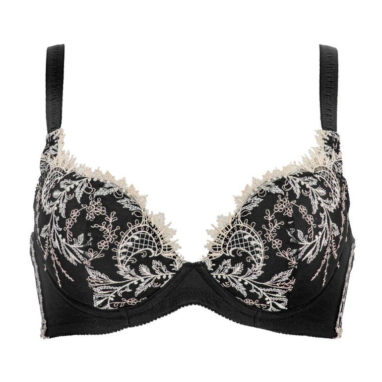 オリエンタルな雰囲気に仕上げたインケミカルエンブロイダリーレース*を使用した、ステップ2の補整ブラジャーです。エンブロイダリーレース*と小さなサテンリボンが、フェミニンかつ華やかで高級感のあるデザインです。