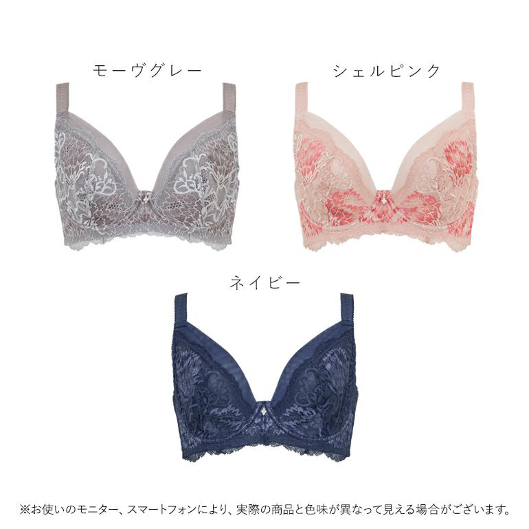 花柄をバイカラーで表現し、グレージュの下地を重ねてニュアンスを添えた「モーヴグレー」、洗練された女性らしい雰囲気の「シェルピンク」、軽やかな印象のくすみカラー「ネイビー」の3色展開です。
