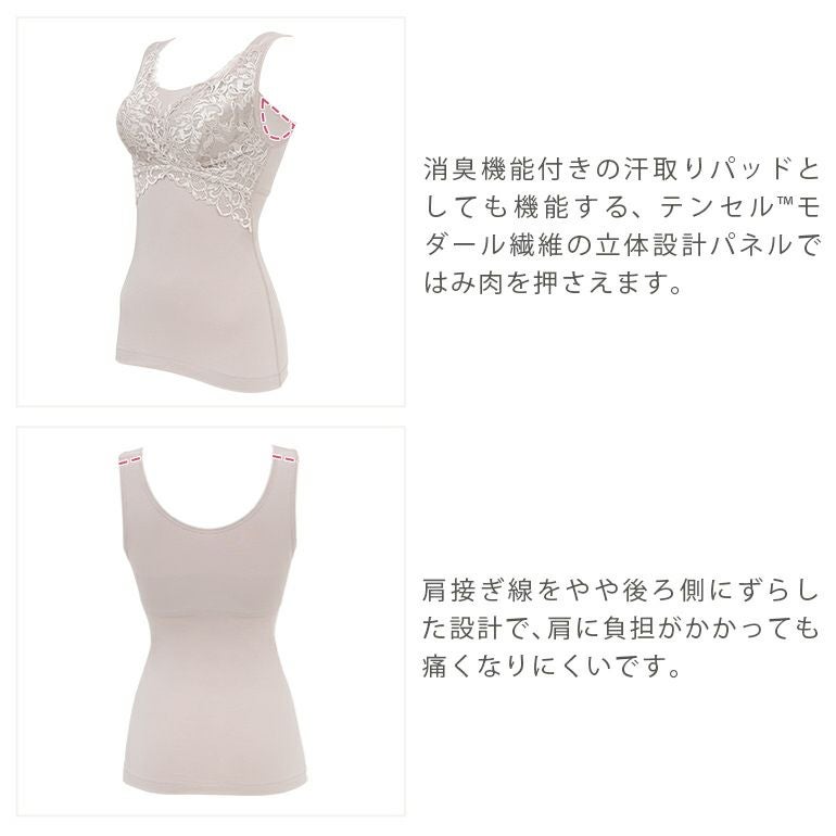 - 幅広のタンクトップ型ショルダーで、食い込みにくく優しい肌触りです。