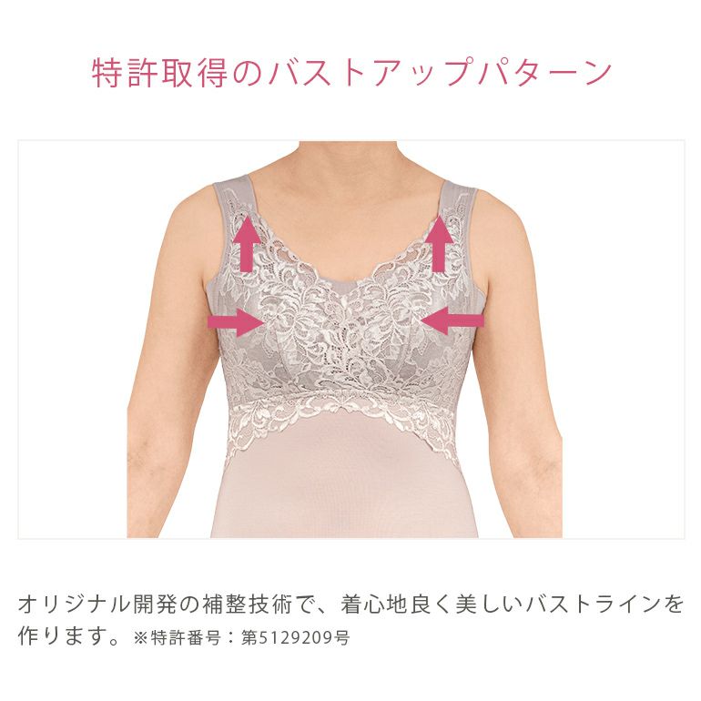 - バストの丸みを潰さずフィットする立体設計。独自の補整機能を施し、楽な着心地とバストアップ機能を両立します。